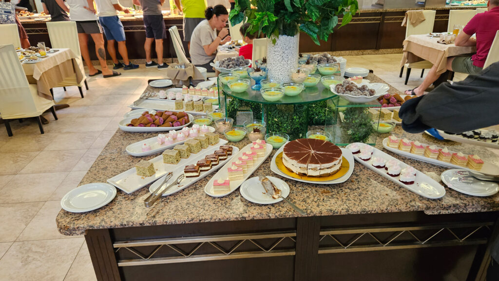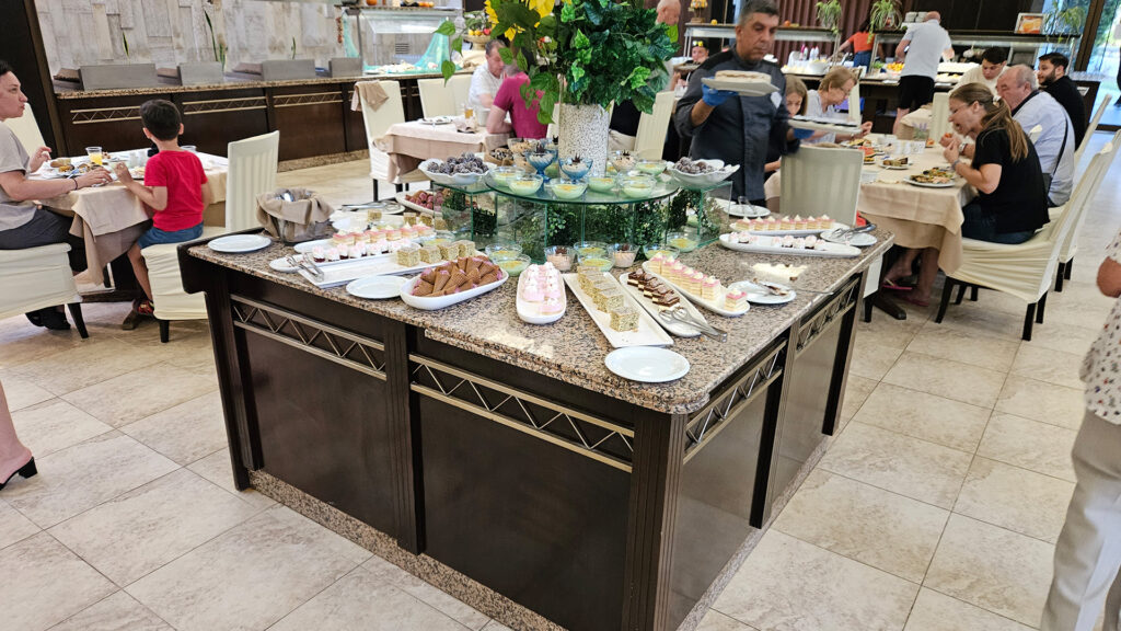 The dining situation is a bit of a mixed bag. The buffet food is tasty, though you’ll want to keep an eye on the clock as service follows a strict schedule.
