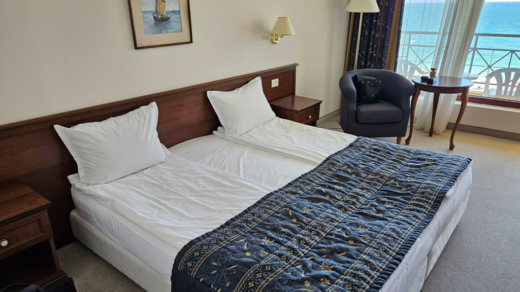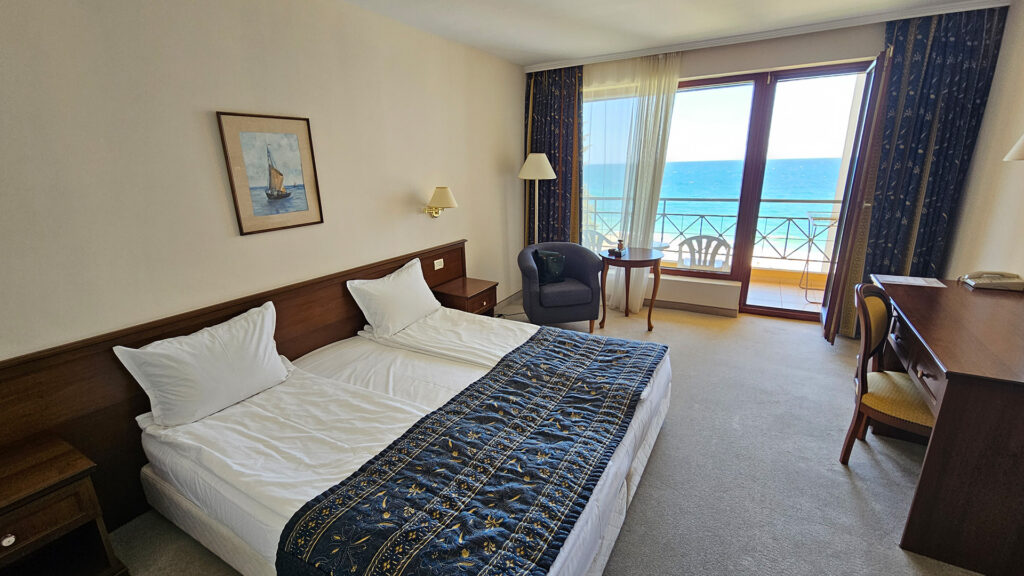 The location is arguably the hotel’s strongest suit. We loved that it’s tucked away in a serene, quiet zone, yet only a 5-minute walk from the bustling center of Golden Sands. You get the best of both worlds: total tranquility at night and easy access to shops and entertainment during the day. Plus, having a private beach where umbrellas and loungers are included in the price is a massive win for any beach lover!