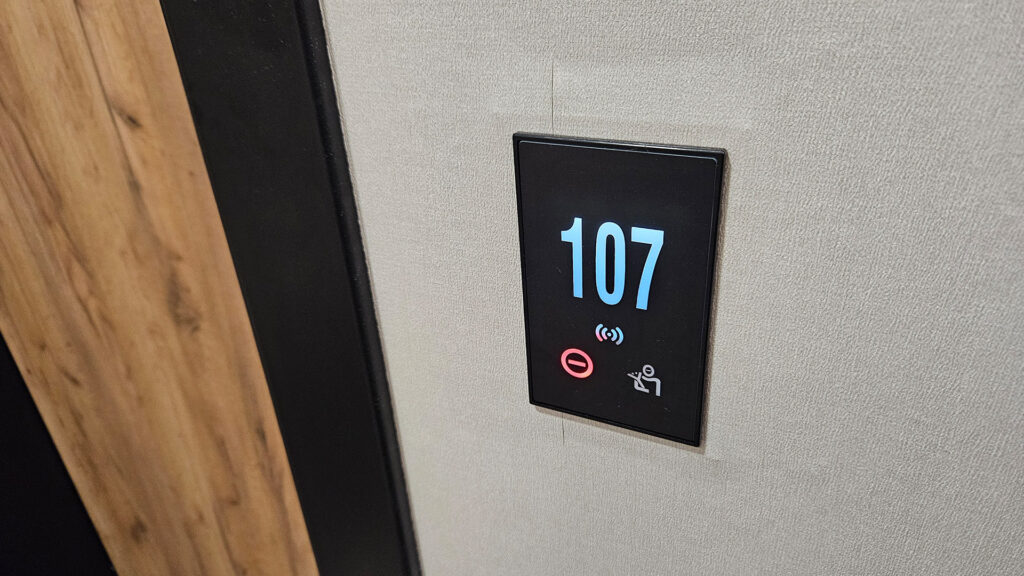 The room was clean and comfortable, but we did find a few “quirks” in the new bathroom design. The door doesn’t seal quite tightly, and since there’s no exhaust fan, steam tends to wander into the bedroom.