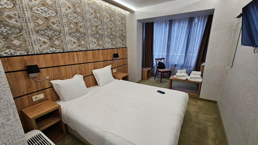 We stayed in a Budget Double Room that had recently been renovated. The hotel chose to expand the interior space by incorporating the terrace into the room. While the extra indoor space is nice, it does mean there’s no outdoor balcony.