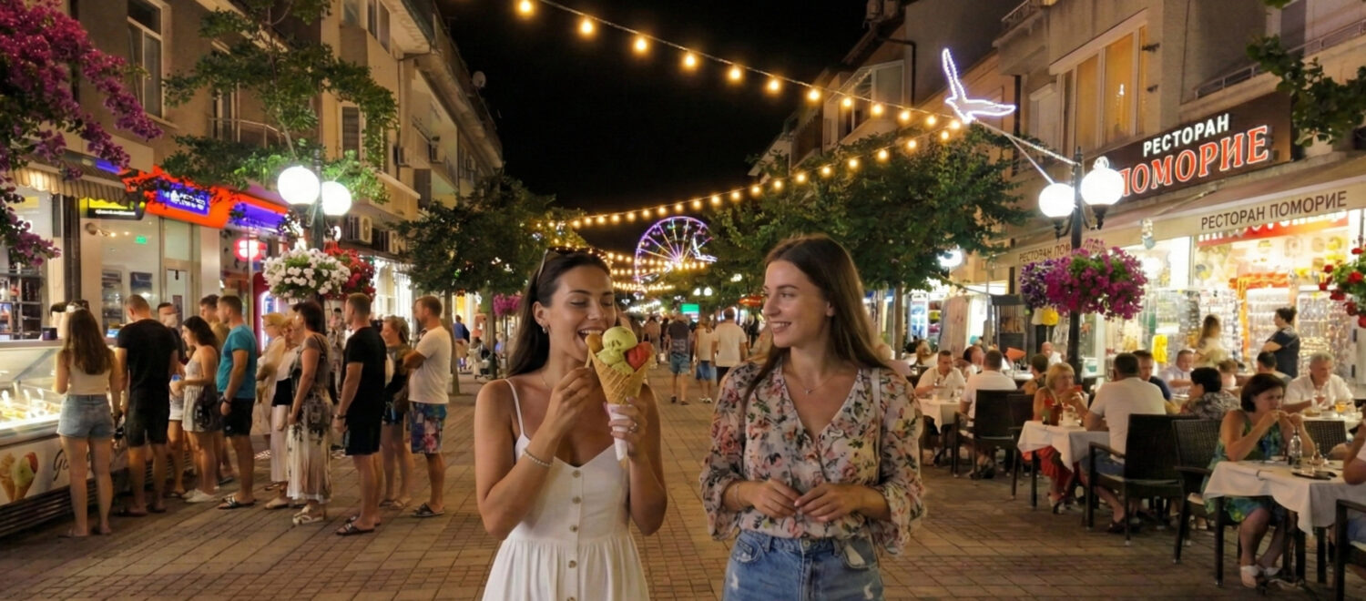 If you love the vibrant atmosphere of summer nights, walking along beautifully illuminated seaside promenades, and exploring bustling pedestrian streets like Knjaz Boris I, you will definitely feel the magic of this place.
